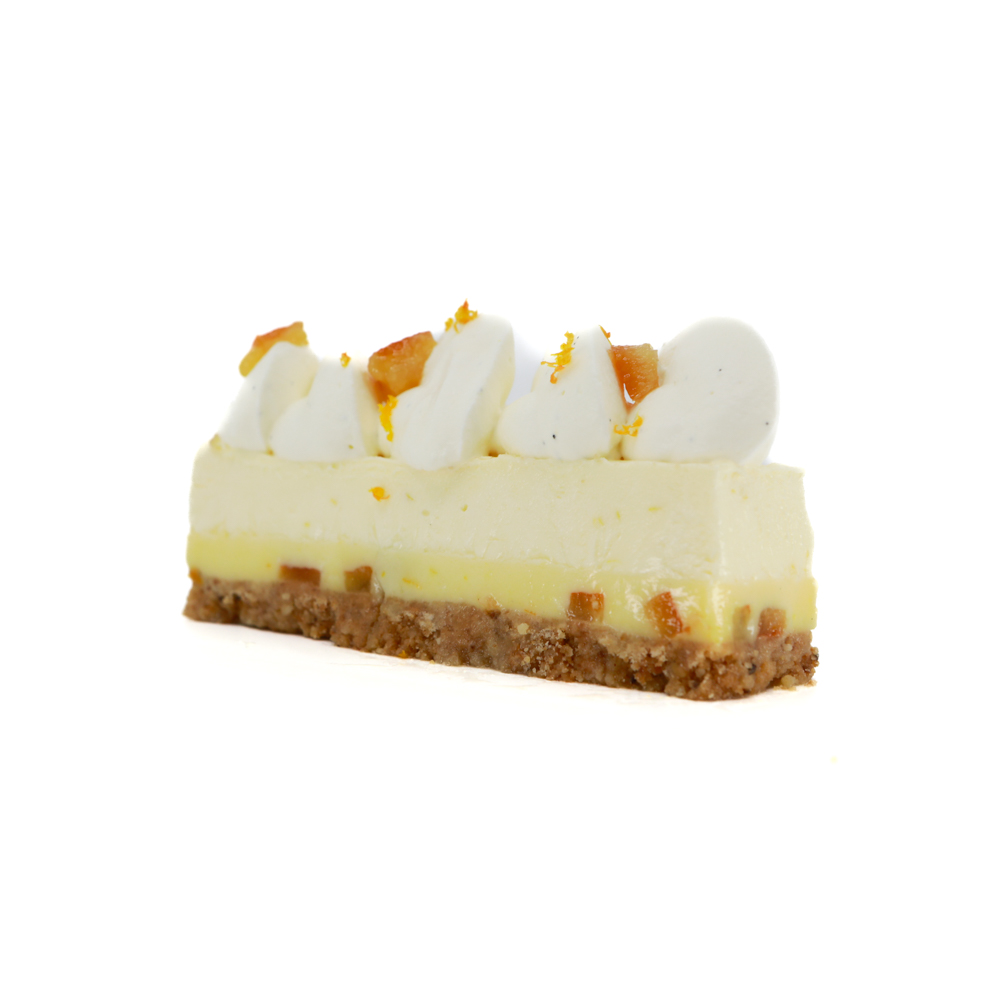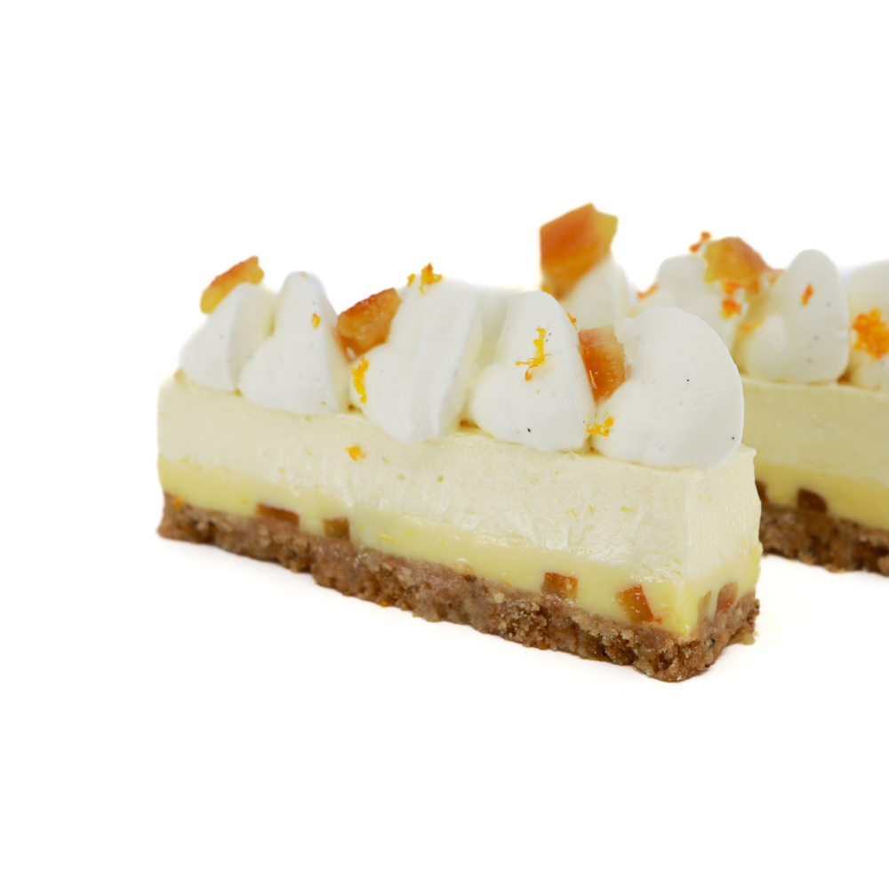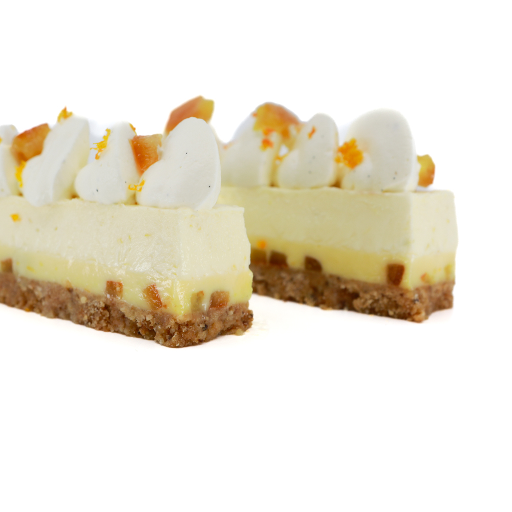 Un entremet de caractère alliant l’onctuosité du fromage blanc avec l’acidité des agrumes… pour un dessert festif léger! Il se compose d’un biscuit sablé, gourmand, suivi d’un crémeux oranges-mandarines avec des cubes d’oranges confites, une mousse fromage blanc du limousin et relevé d’un gélifié agrumes.