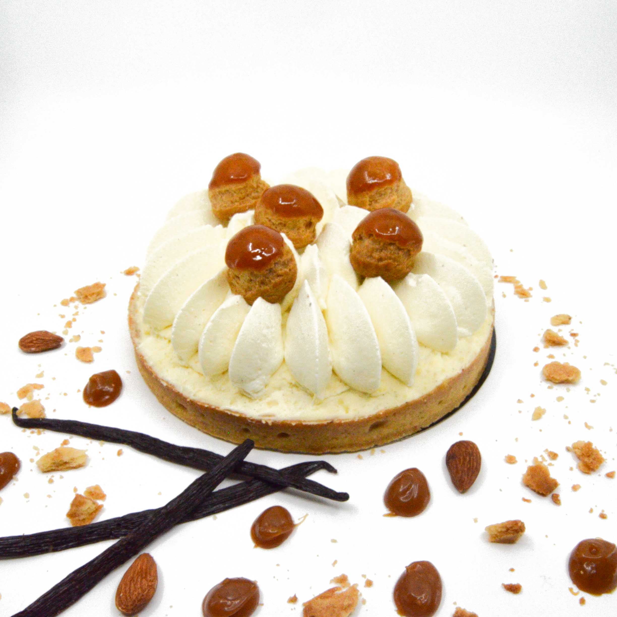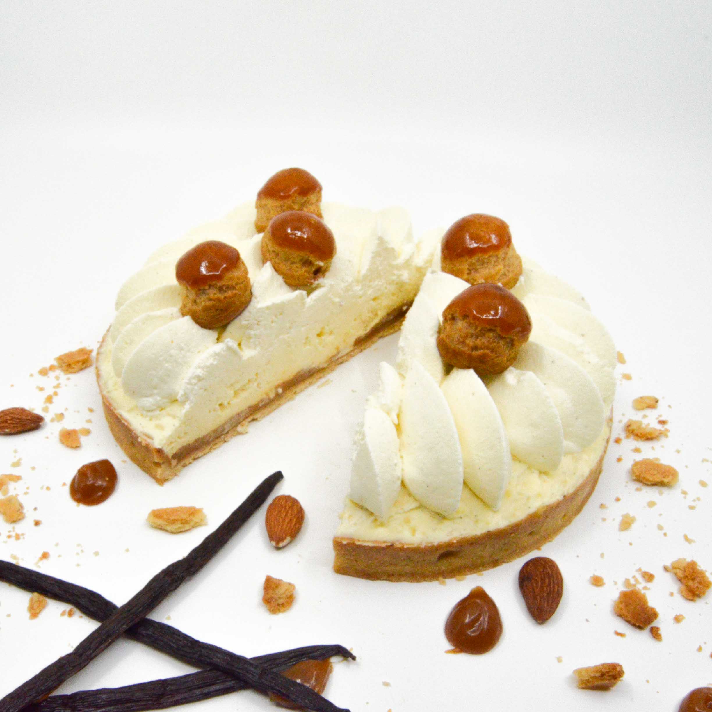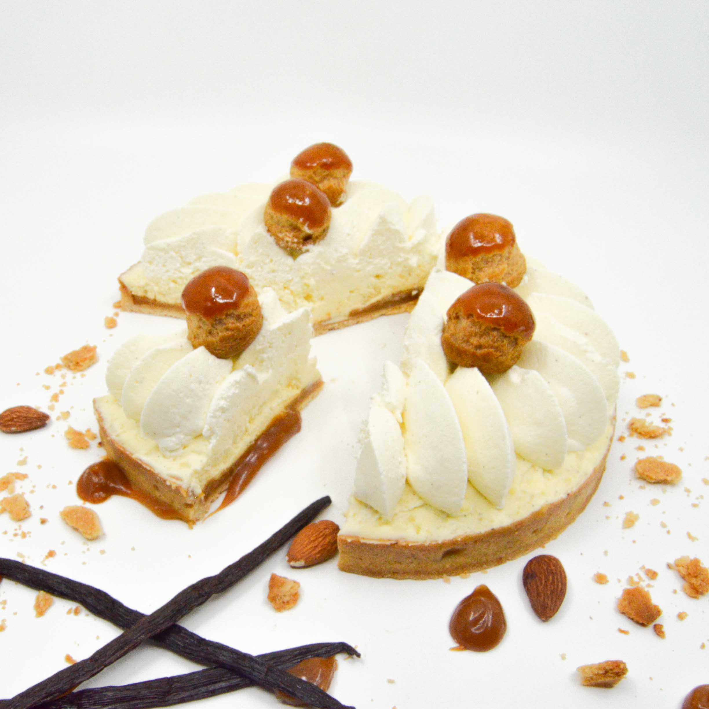 Chantilly vanille, Crémeux Caramel, Mousse légère vanille, Pâte sucrée